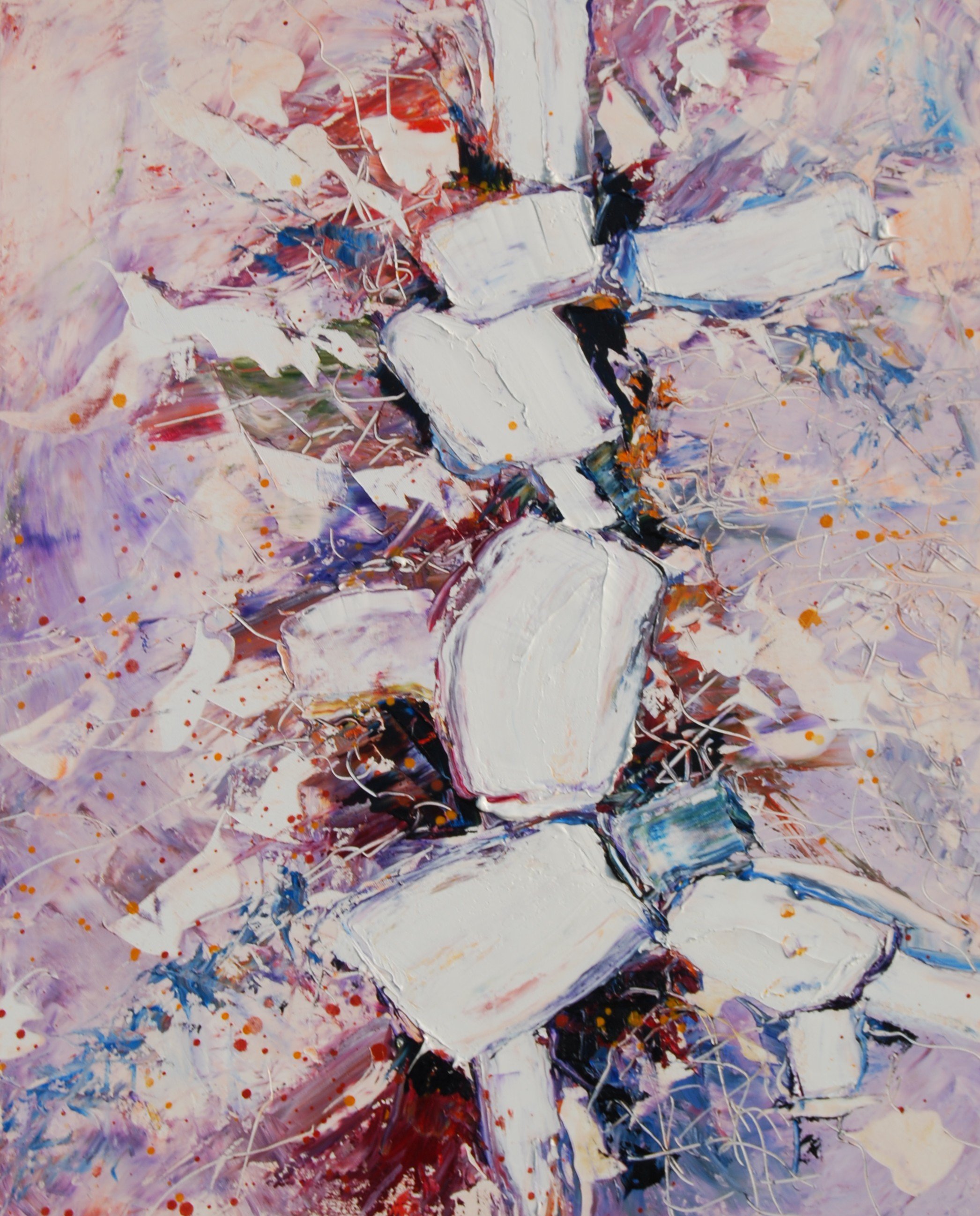 …is inspired by the cracks in cement sidewalks, a metaphor for the fractures and complexities in our personal lives. Through these textures and bold colors, I explore the delicate balance between calm and chaos.
